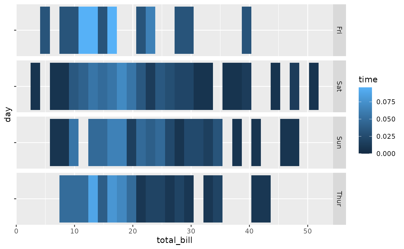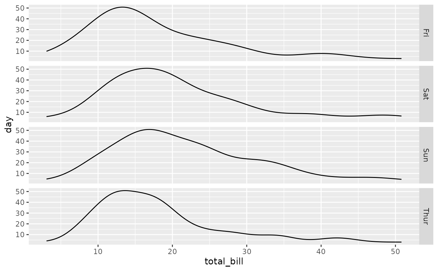 ggally_facetdensitystrip(tips, aes(x = total_bill, y = day))