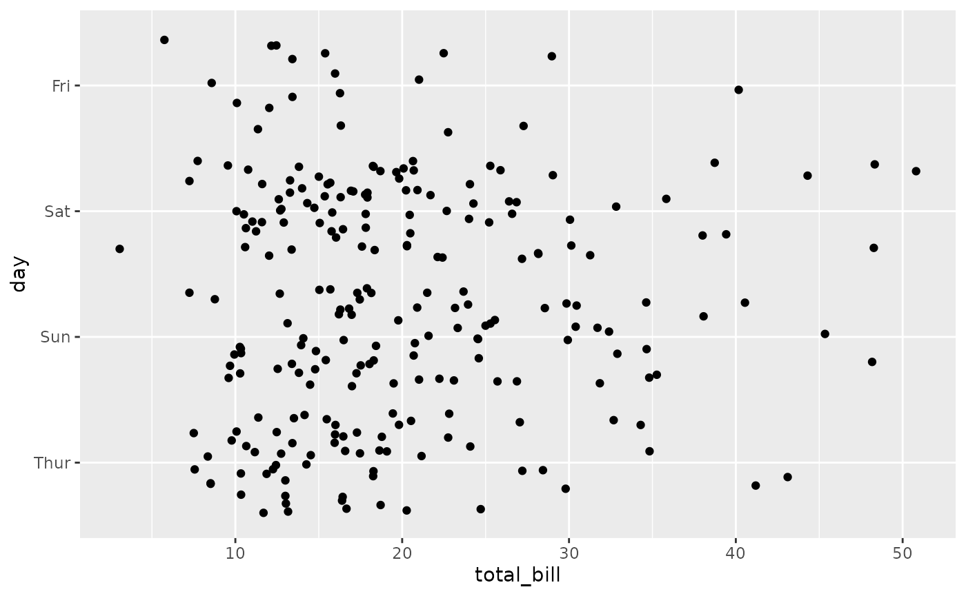 ggally_autopoint(tips, aes(x = total_bill, y = day))