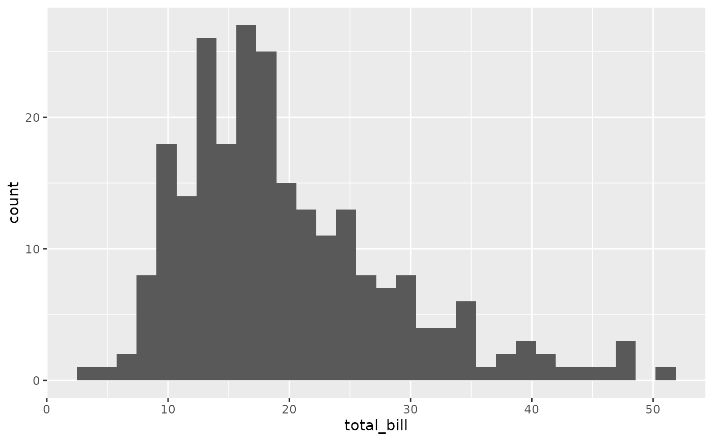 #> `stat_bin()` using `bins = 30`. Pick better value with `binwidth`.
