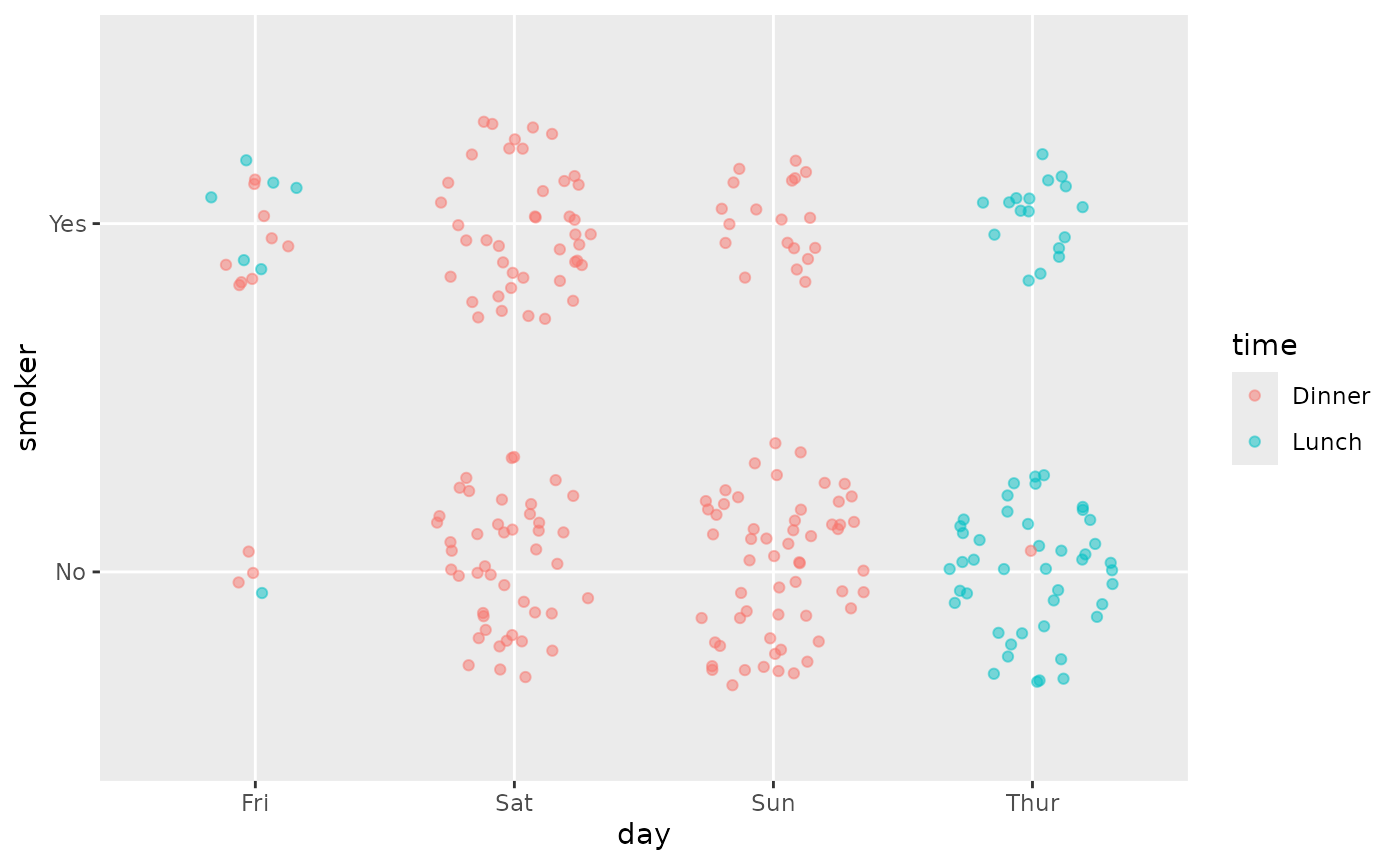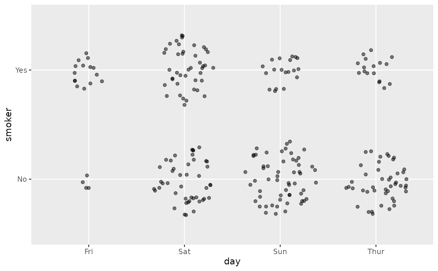 ggally_autopoint(tips, aes(x = day, y = smoker))