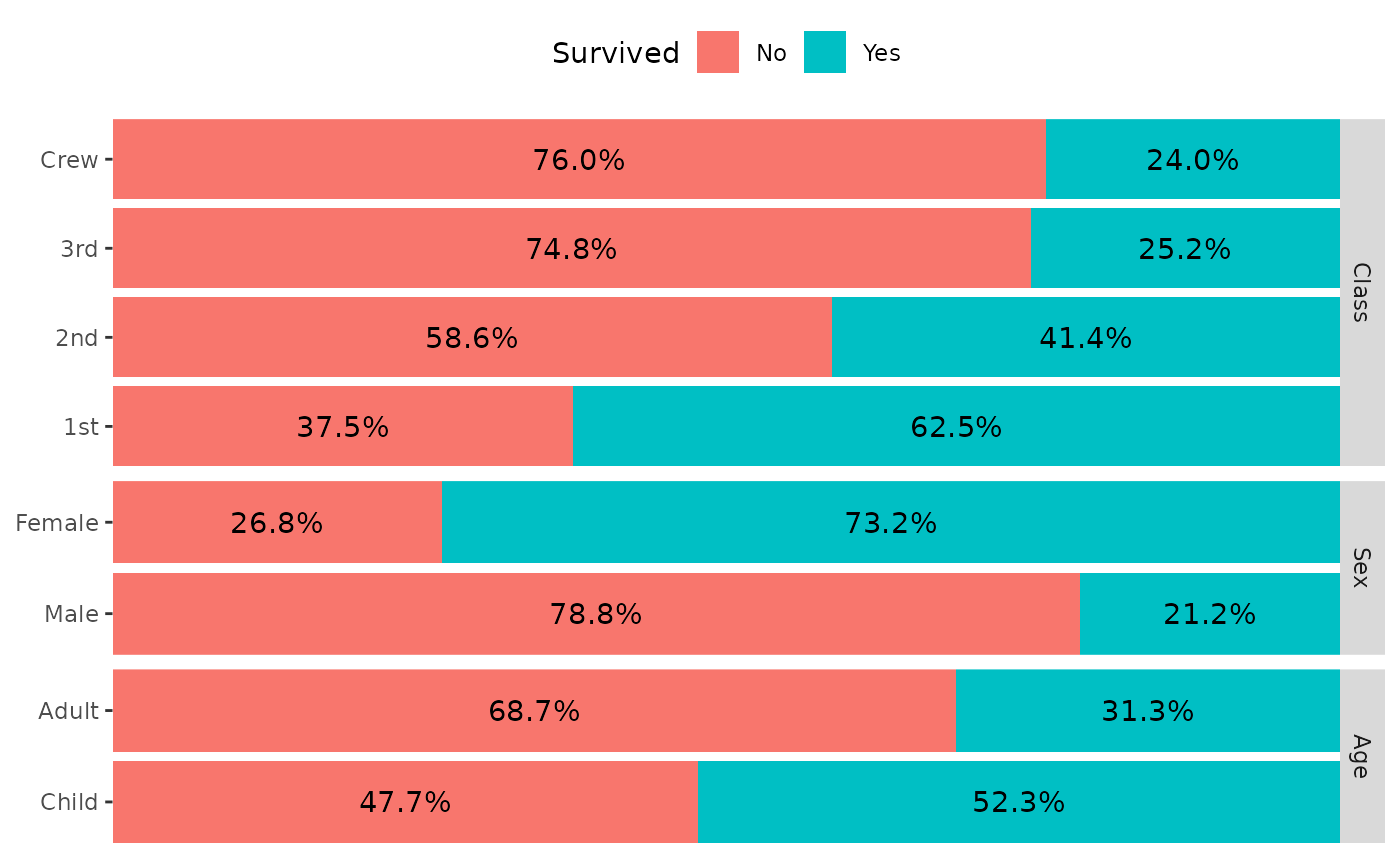 ggbivariate(d, "Survived", mapping = aes(weight = Freq))