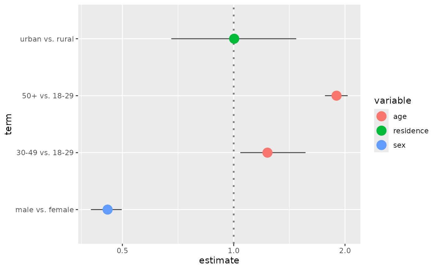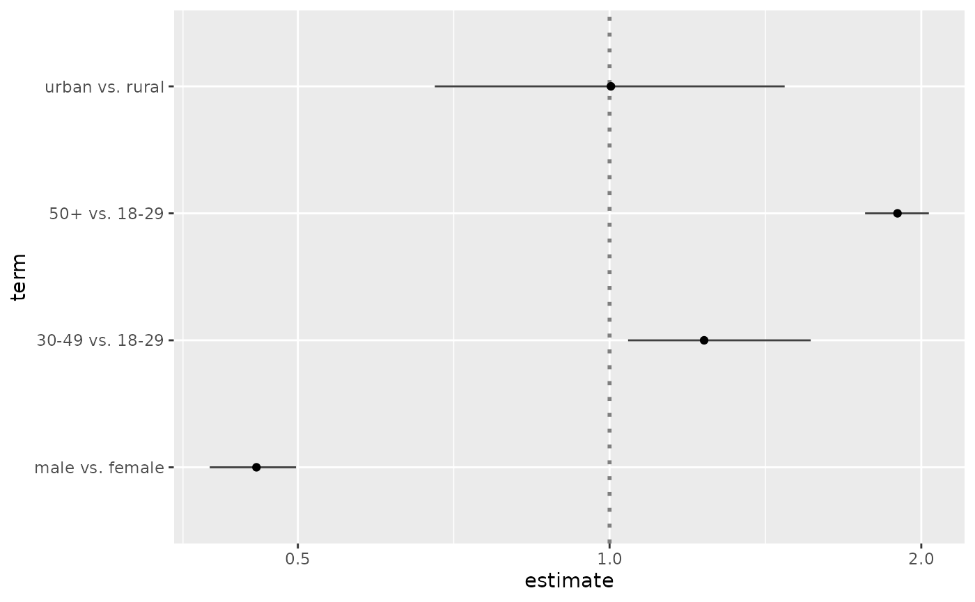 term = c("male vs. female", "30-49 vs. 18-29", "50+ vs. 18-29", "urban vs. rural"),