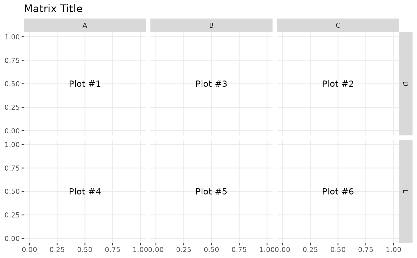 ggmatrix() is a function for managing multiple plots in a matrix-like layout. It was designed to adapt to any number of columns and rows. This allows for very customized plot matrices.