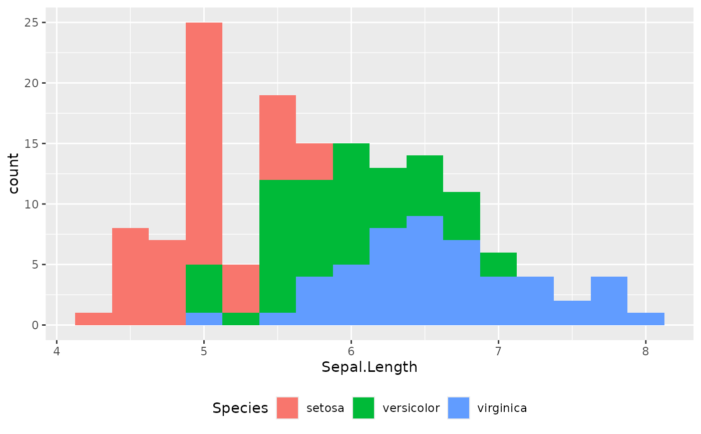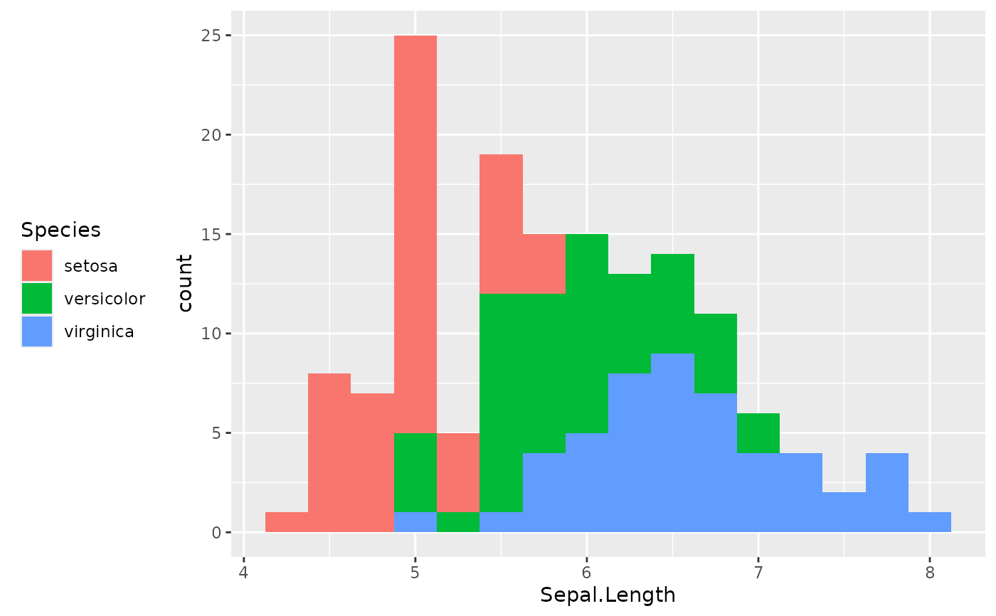 ggplot(iris, aes(Sepal.Length, fill = Species)) +