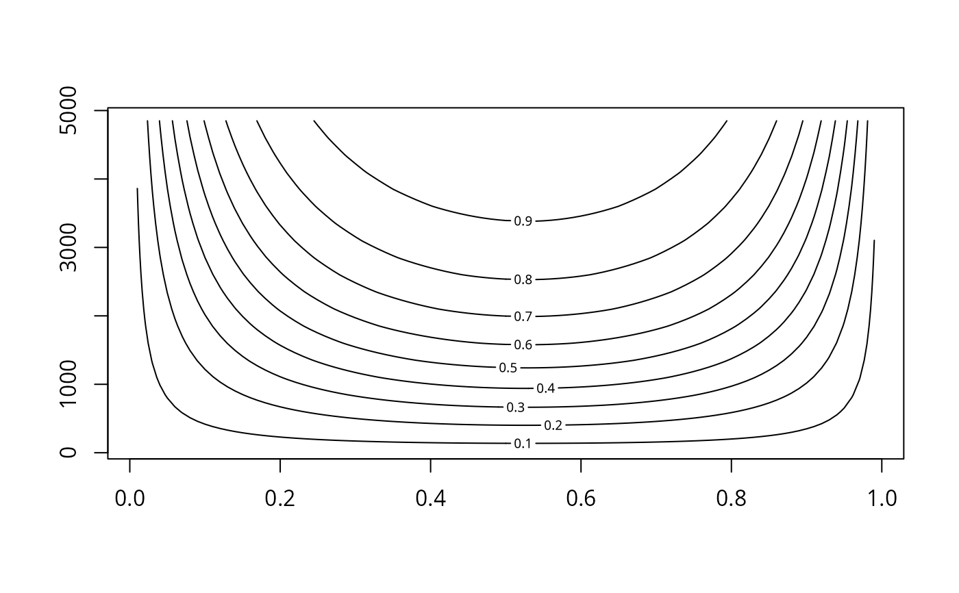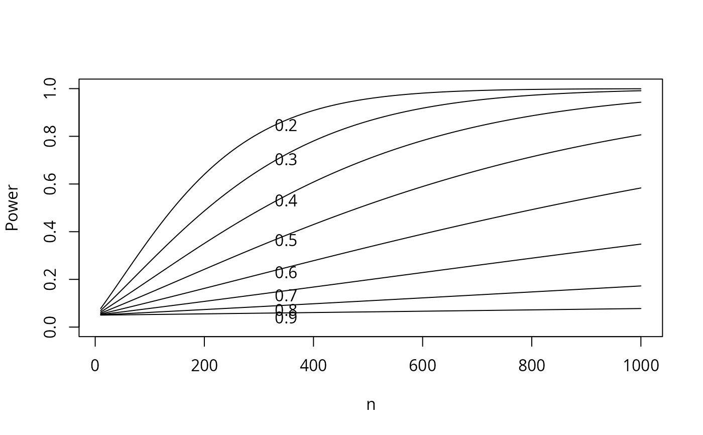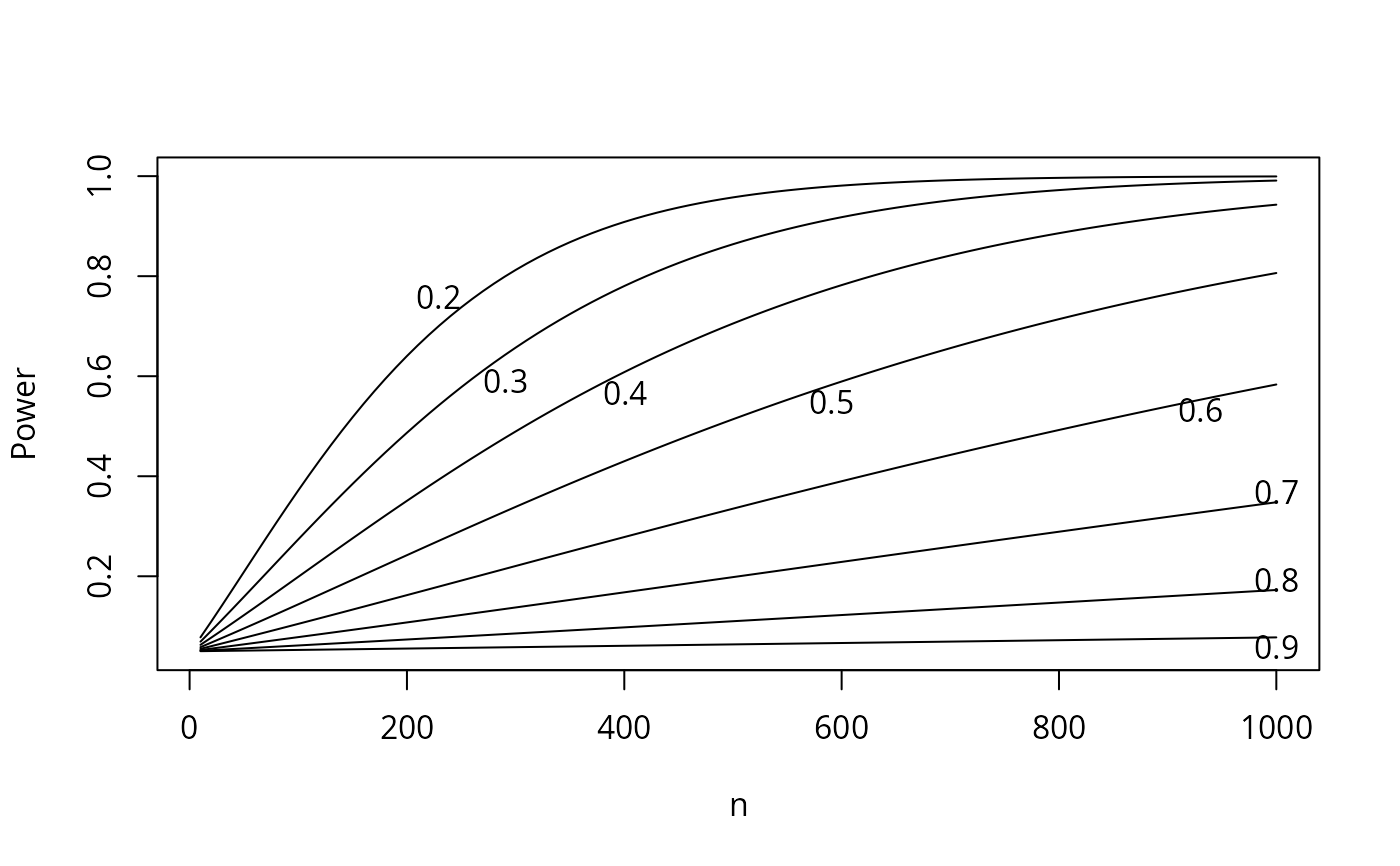 # This forms a length(p1)*length(n) matrix of power estimates