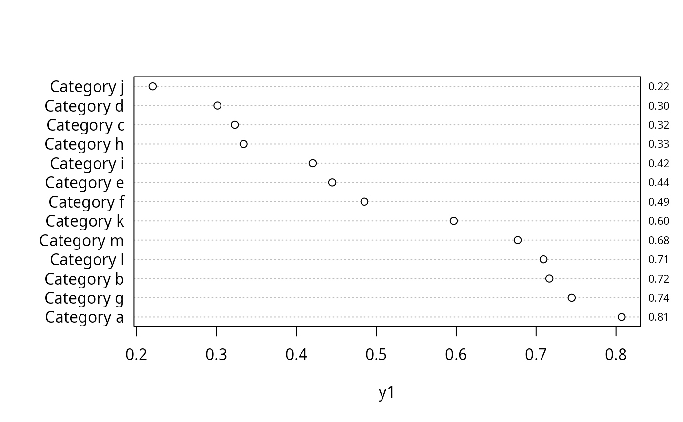 ## dotchart(y1, g, groups=maj, xlab='Y')