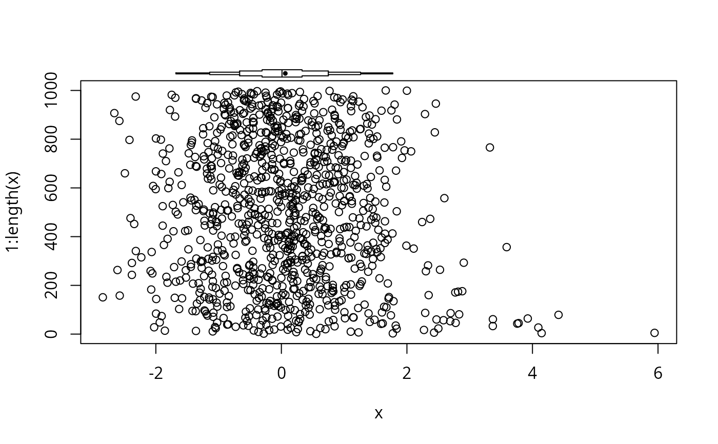 bwplot(g ~ x, panel=panel.bpplot, nout=.05, scat1d.opts=list(frac=.01))