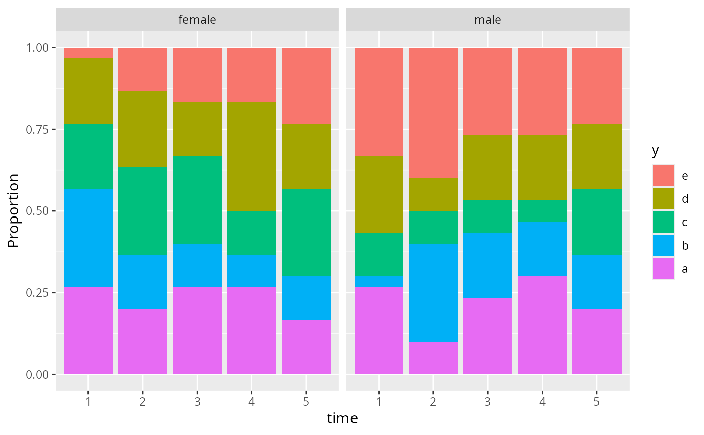propsPO(y ~ time + sex, data=d) # may add nrow= or ncol=