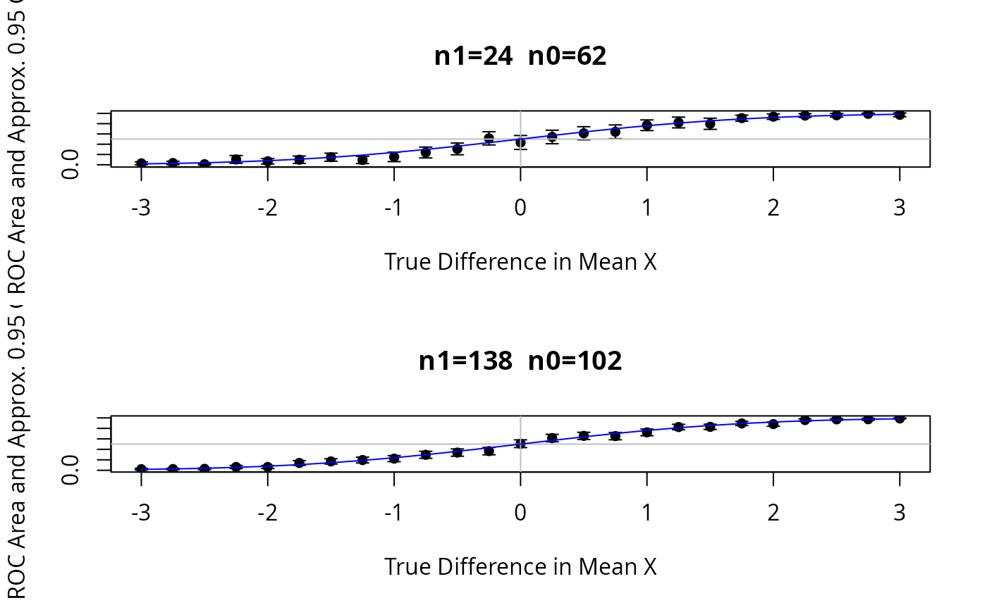 # Show typical 0.95 confidence limits for ROC areas for a sample size