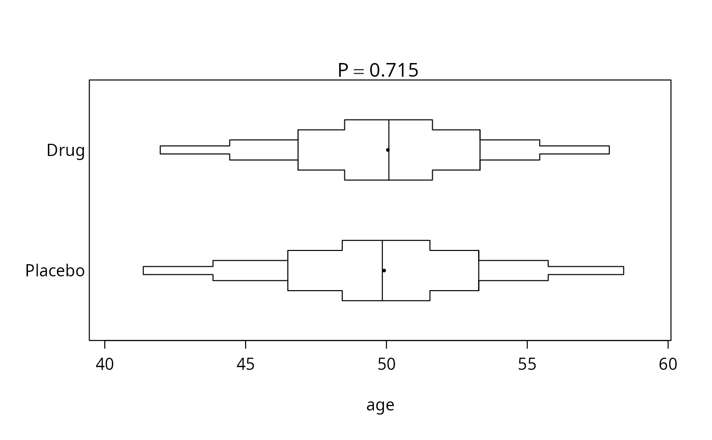summary(age ~ stage, fun=smedian.hilow, method='cross')