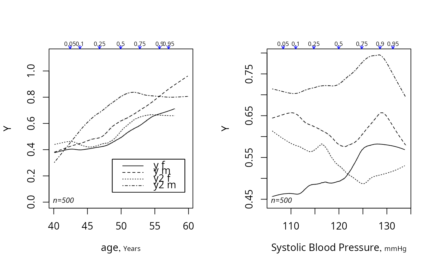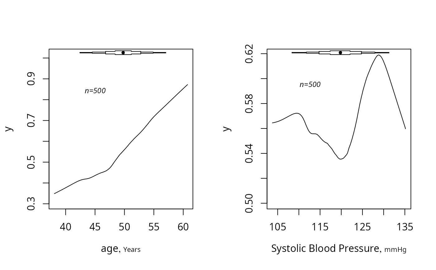 summaryRc(y ~ age + bp, bpplot='top', datadensity=FALSE, trim=.01)
