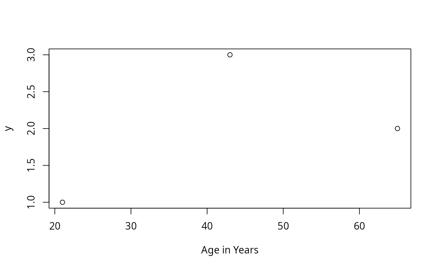 plot(age, y, xlab=valueLabel(age))