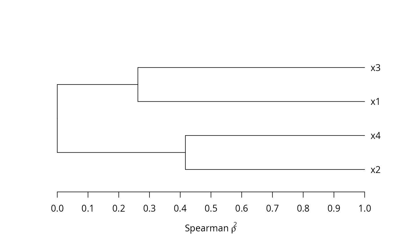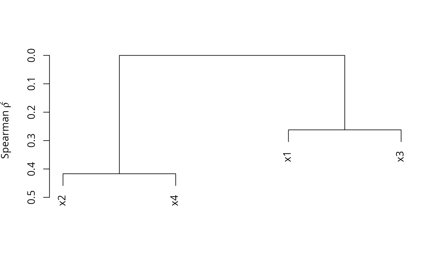 #> varclus(x = x, similarity = "spear")