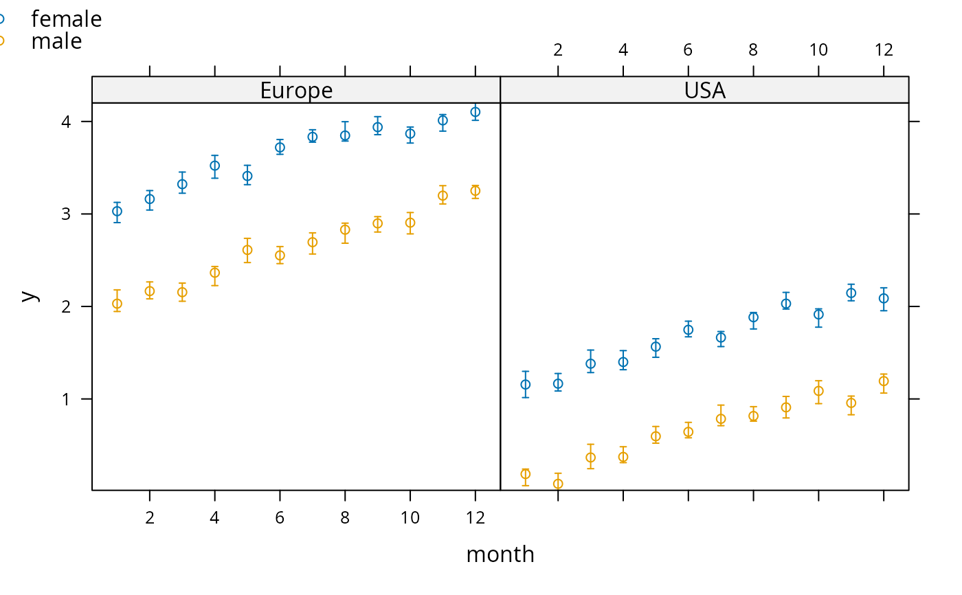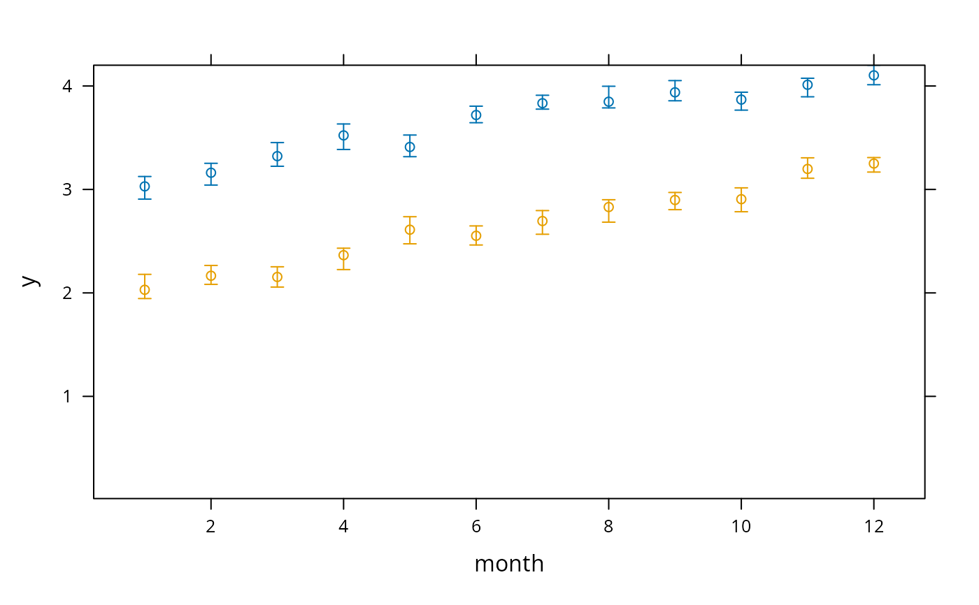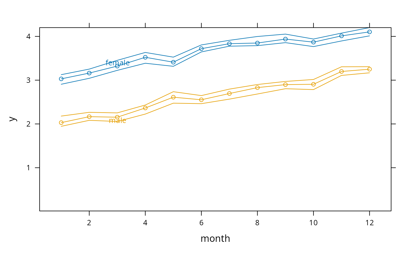 # Can also use Y <- cbind(y, Lower, Upper); xYplot(Cbind(Y) ~ ...)