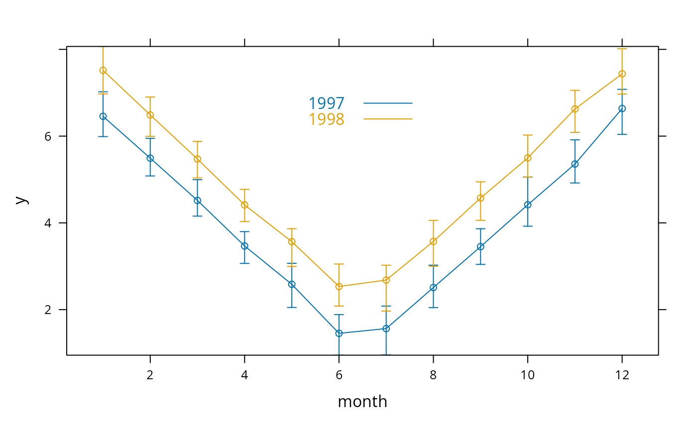 xYplot ( Cbind ( y, Lower, Upper ) ~ month, groups=year,
