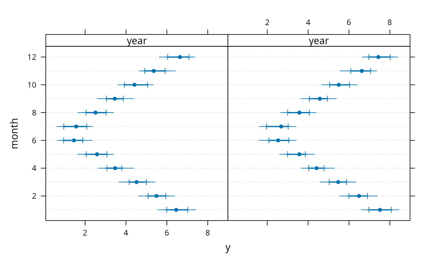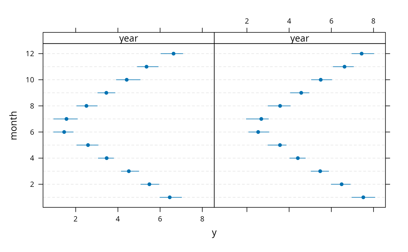 Dotplot(month ~ Cbind(y, Lower, Upper) | year, data=s)