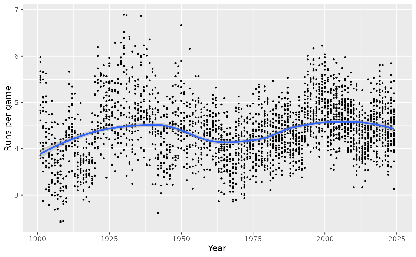 ggplot(teams, aes_string(x = "yearID", y = yvar)) +