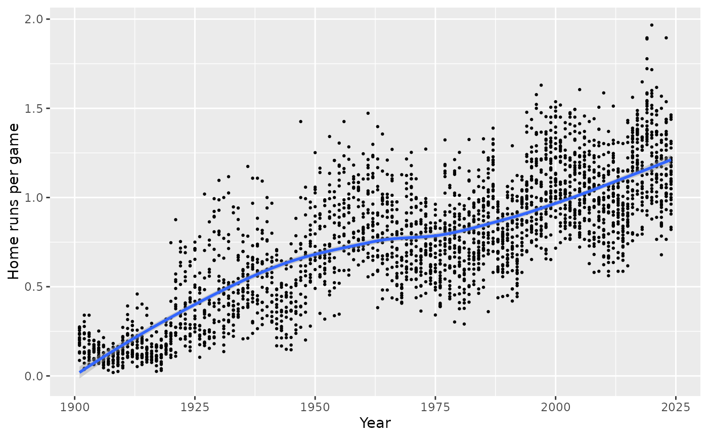 summarise(meanHRpg = mean((HR + HRA)/Ghome), nyears = n()) %>%