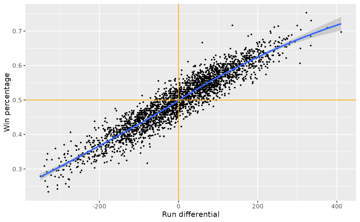 labs(x = "Run differential", y = "Win percentage")