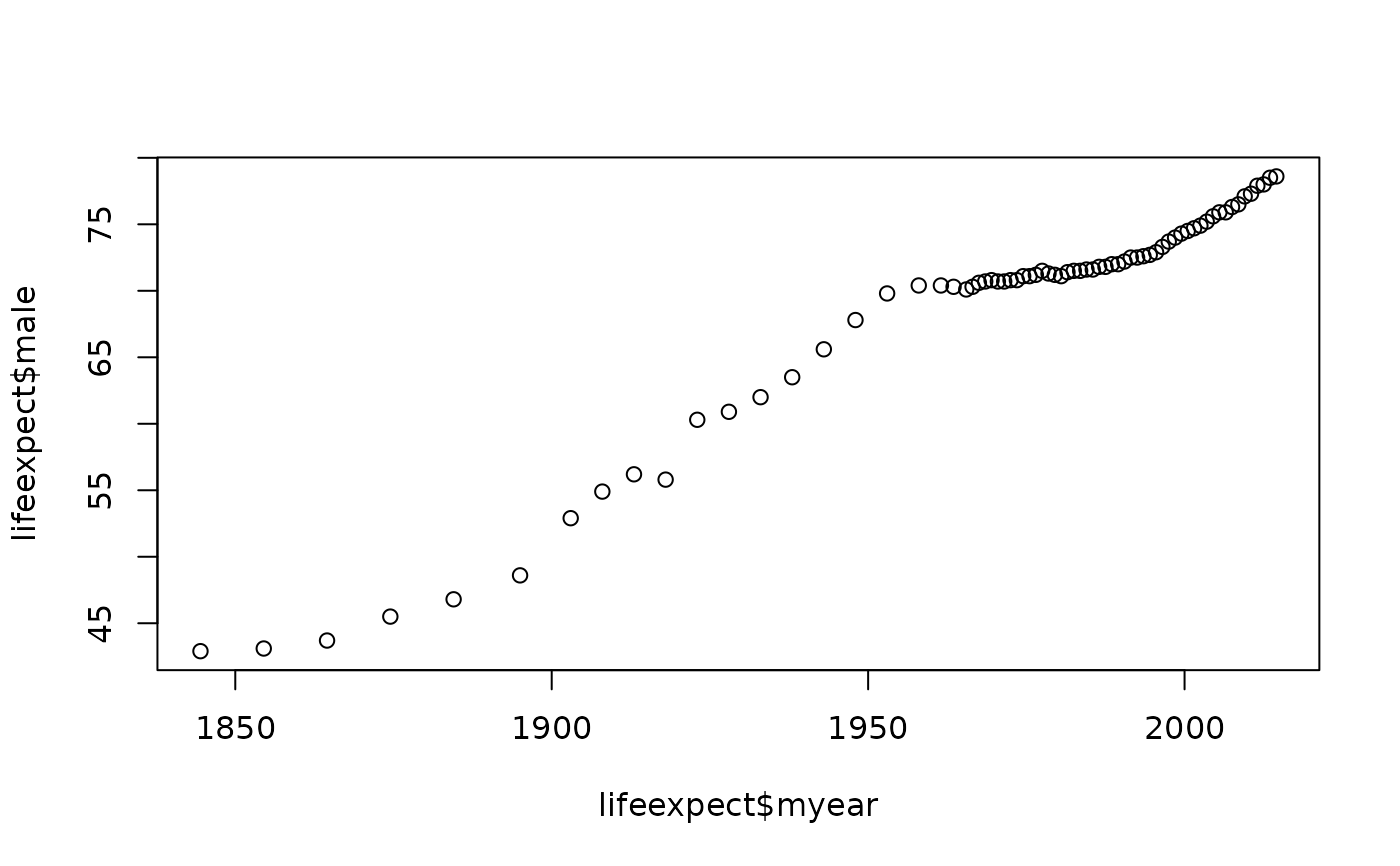 The estimated life expectancy for newborn Danes split according to gender.