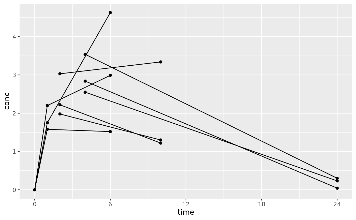o_conc_sparse <- PKNCAconc(d_sparse, conc~time|id, sparse=TRUE)