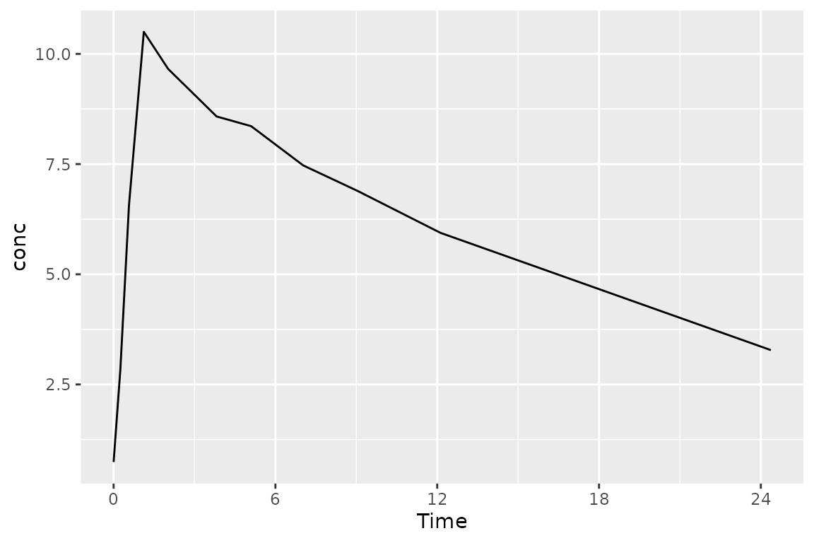 o_conc <- PKNCAconc(conc~Time, data=d_conc)