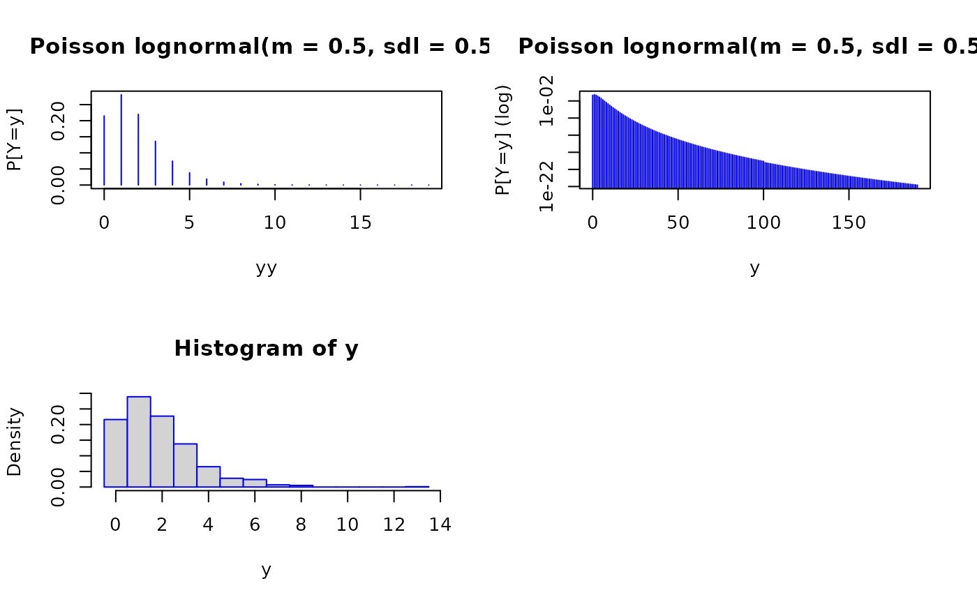 polonoUC.RdDensity, distribution function and random generation for the Poisson lognormal distribution.