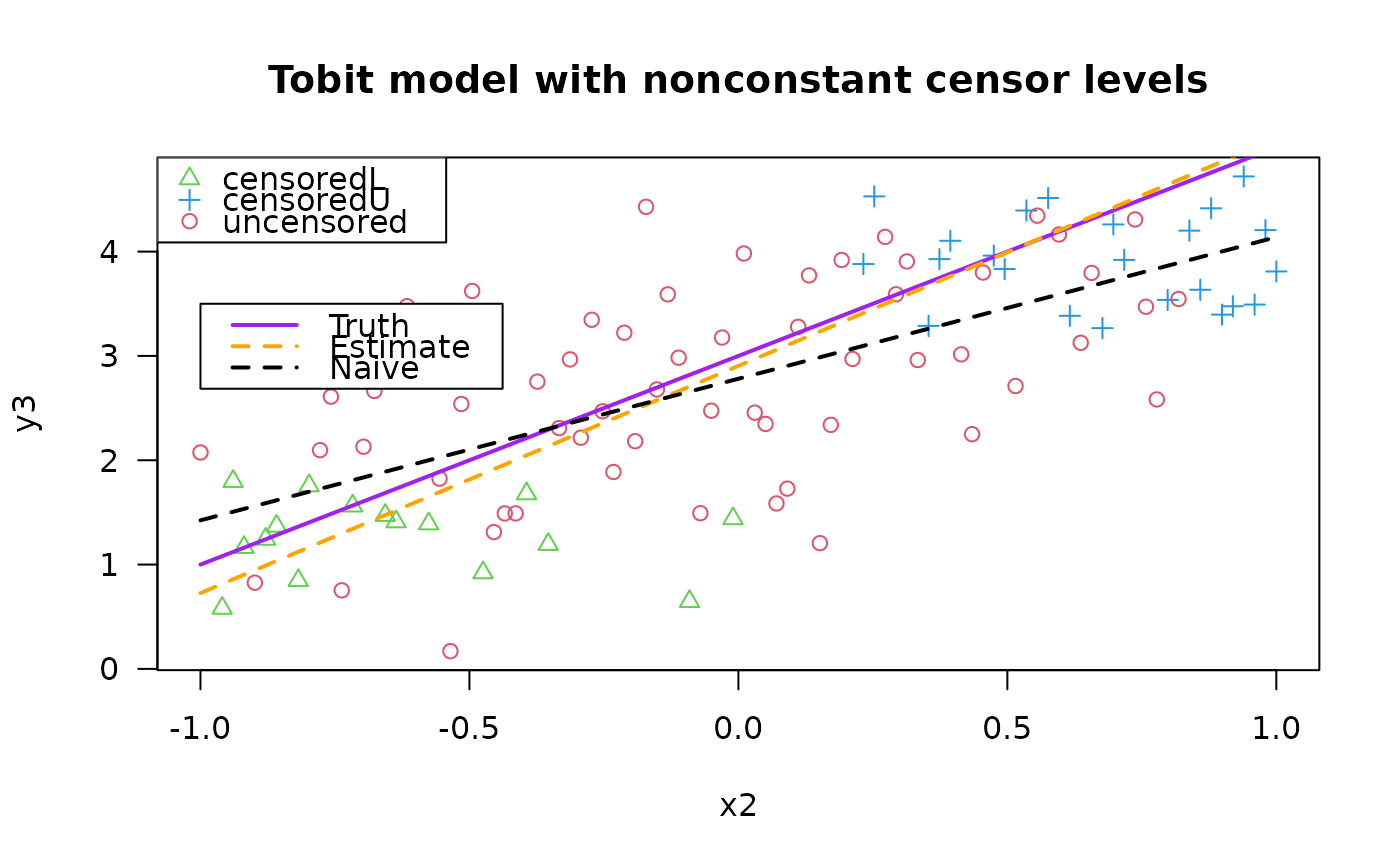 y2 = rtobit(nn, mean = meanfun2(x2), Lower = Lower, Upper = Upper),
