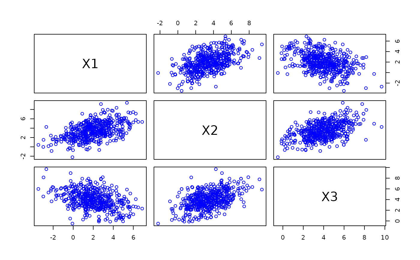 pairs(ymat, col = "blue")