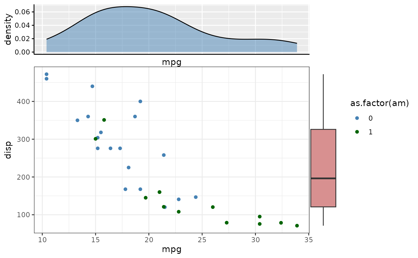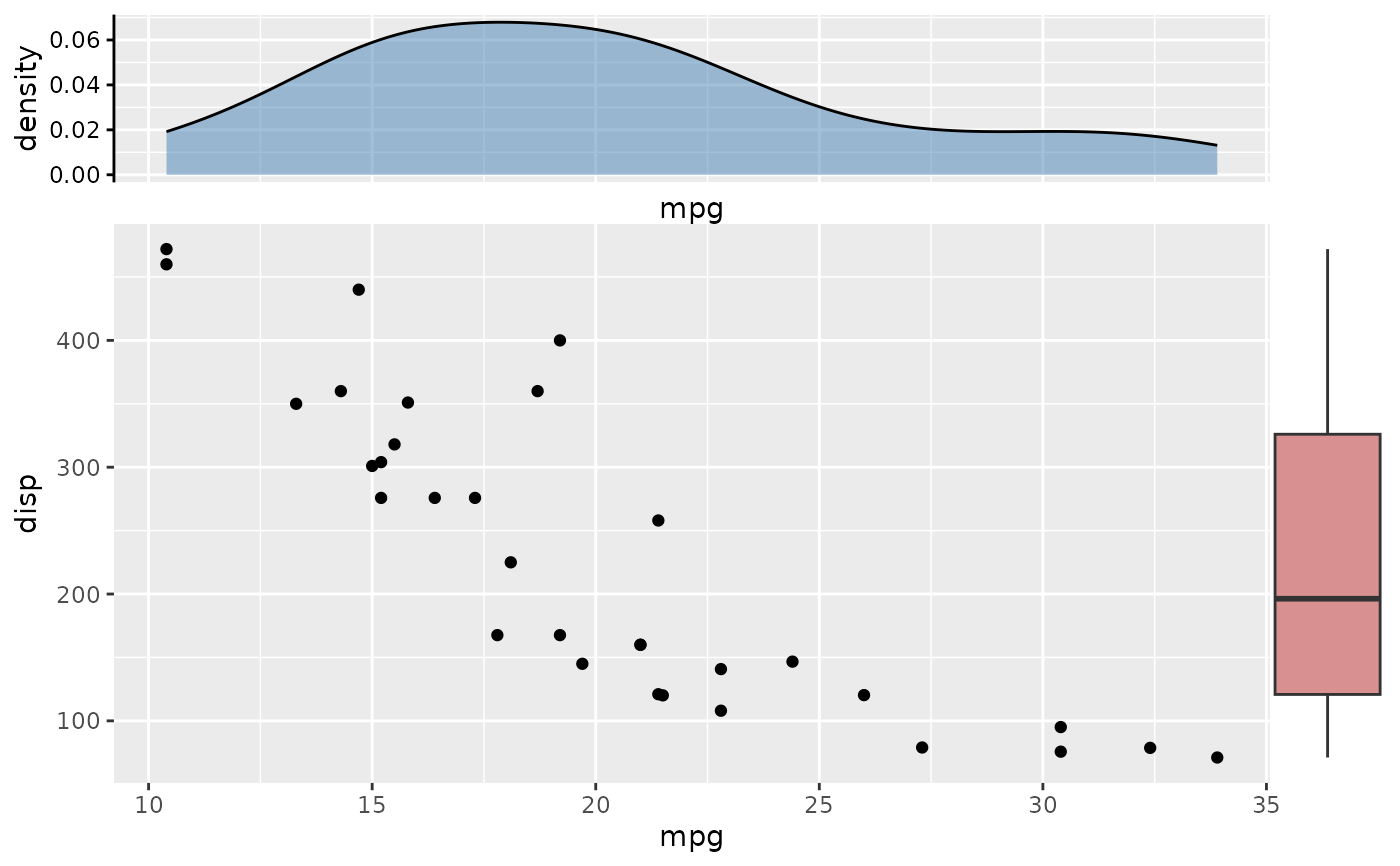 p <- ggplot(mtcars, aes(mpg, disp)) + geom_point()