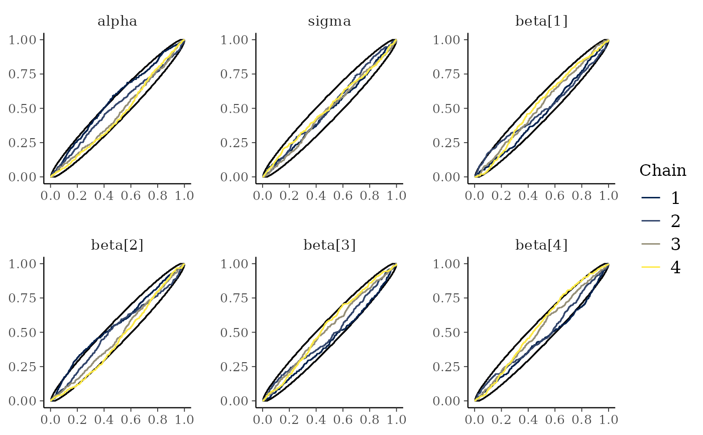 mcmc_rank_ecdf()The ECDFs of the ranks from mcmc_rank_hist() are plotted with the