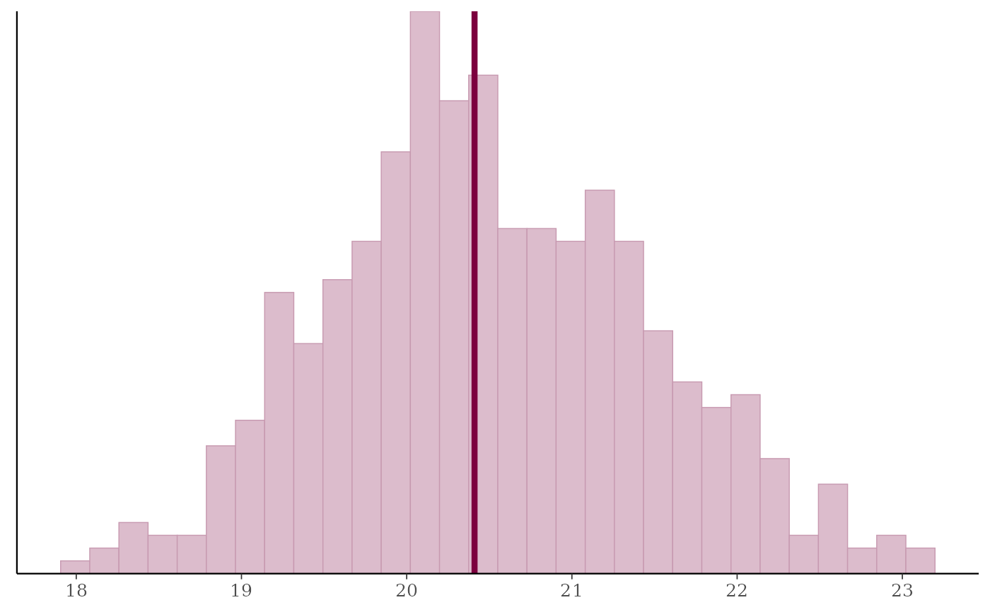 ppc_stat(), ppc_stat_freqpoly()A histogram or frequency polygon of the distribution of a statistic