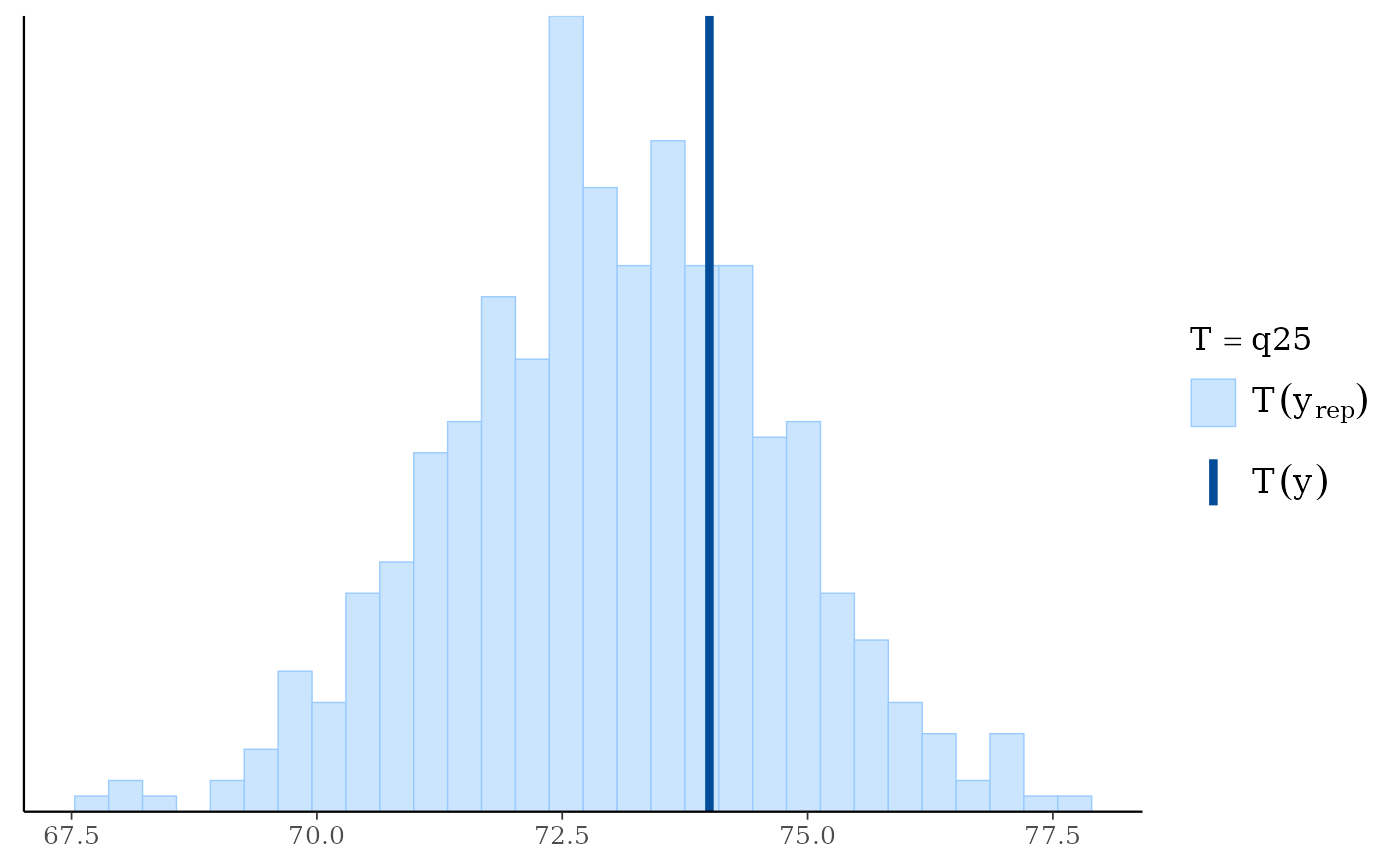 ppc_stat(y, yrep, stat = "q25") # legend includes function name