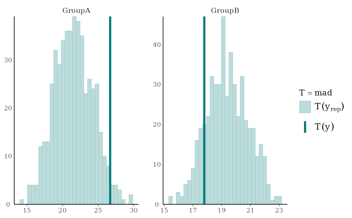 ppc_stat_grouped(),ppc_stat_freqpoly_grouped()The same as ppc_stat() and ppc_stat_freqpoly(), but a separate plot is