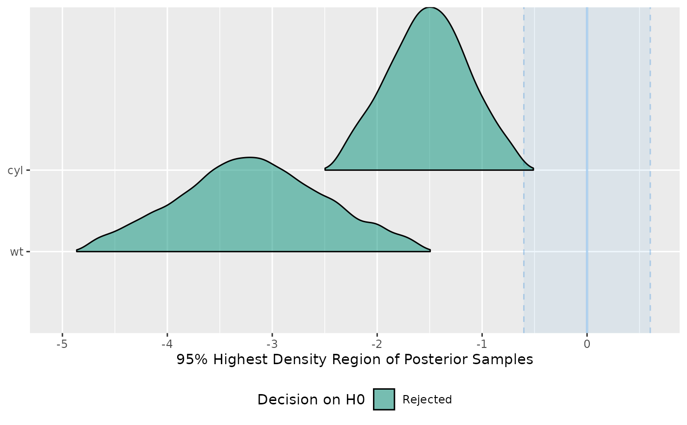 #> cyl | Rejected | 0.00 % | [-2.40, -0.64]