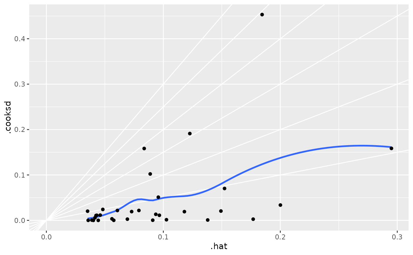 #> # .hat <dbl>, .sigma <dbl>, .cooksd <dbl>, .std.resid <dbl>