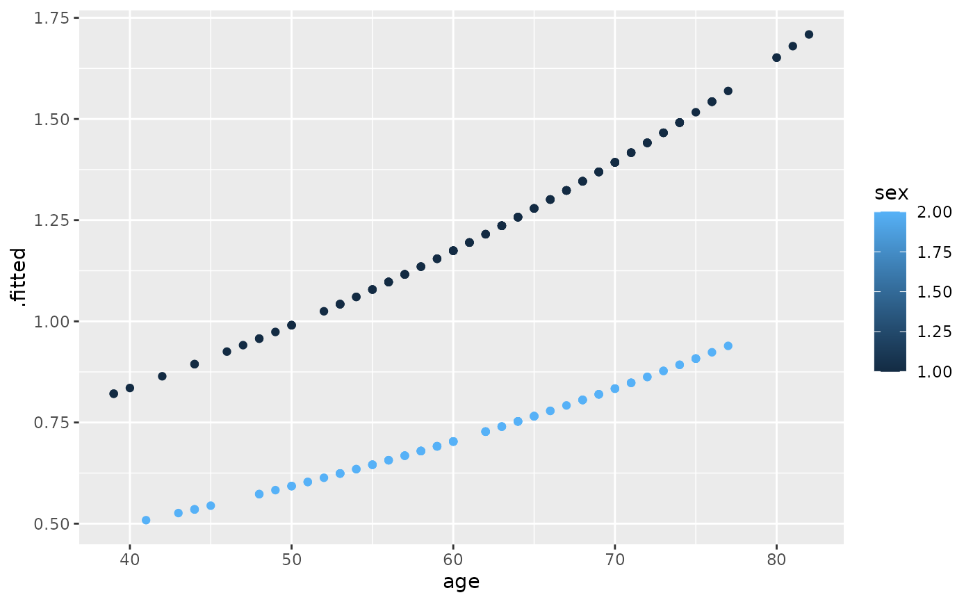 ggplot(lp, aes(age, .fitted, color = sex)) +