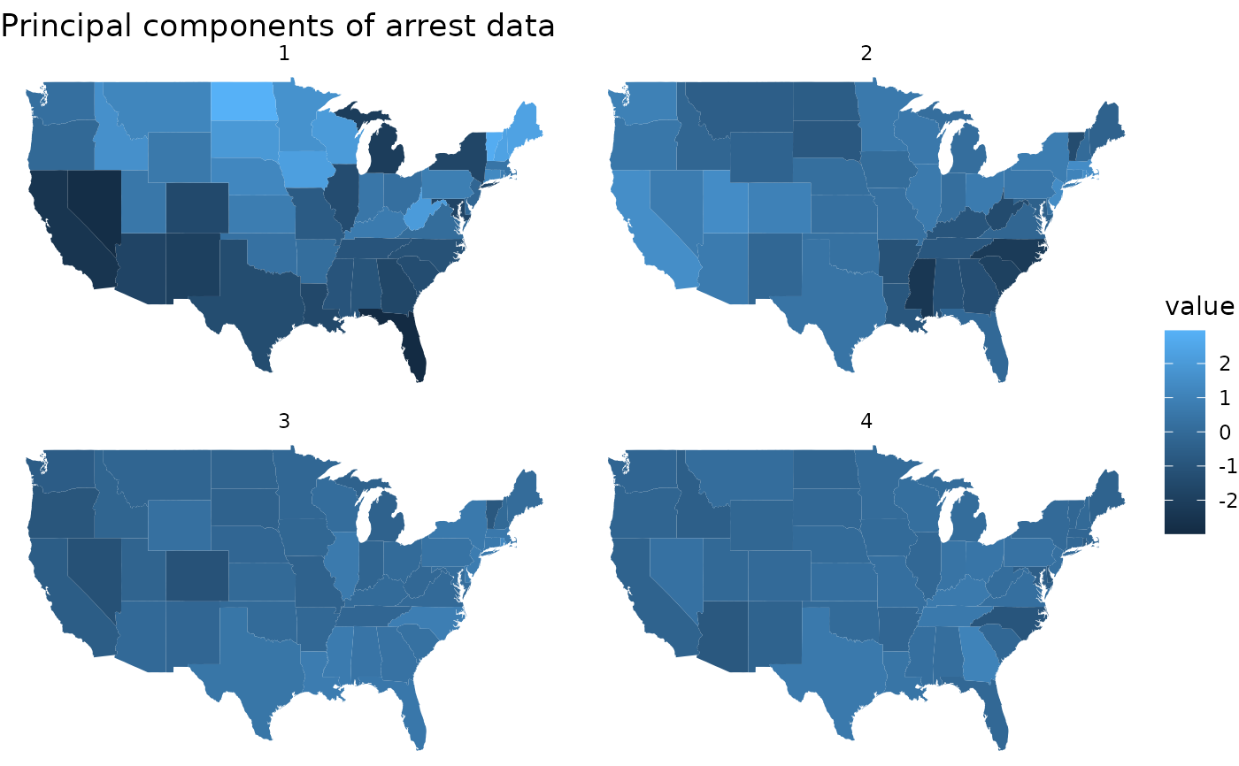 ggtitle("Principal components of arrest data")