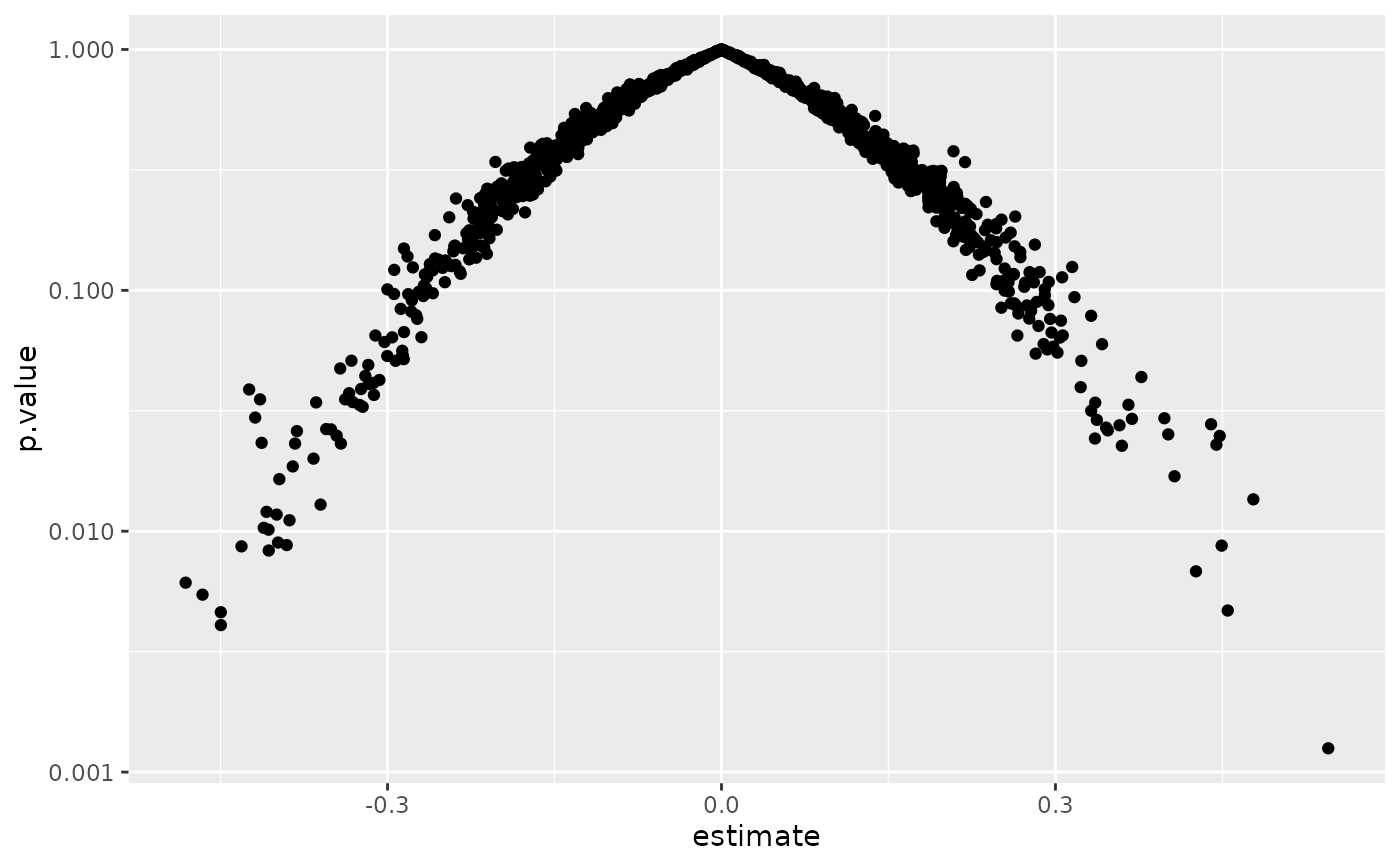ggplot(td, aes(estimate, p.value)) +
