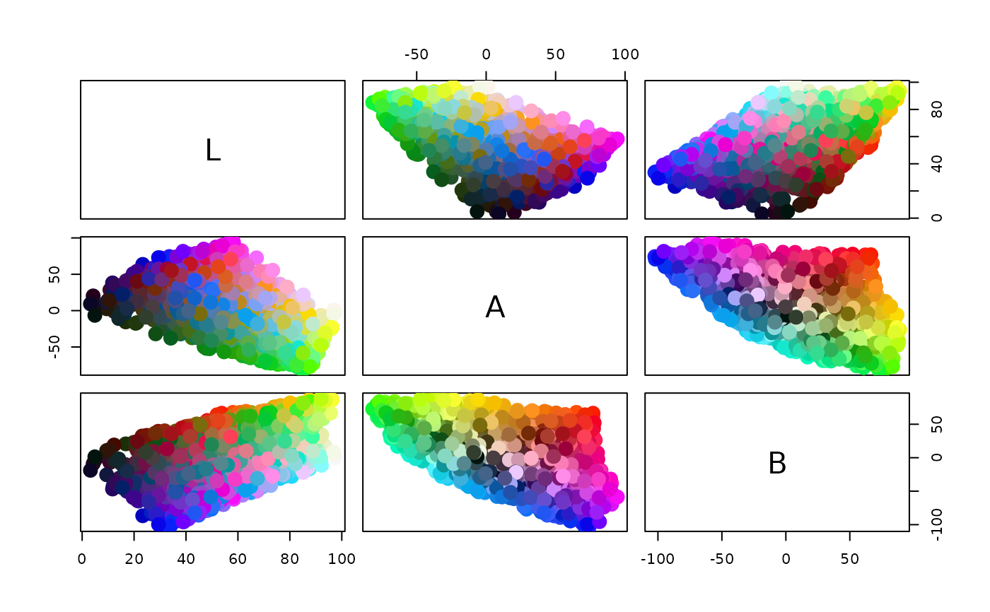 LAB.RdThis function creates colors of class “LAB”; a subclass of the virtual