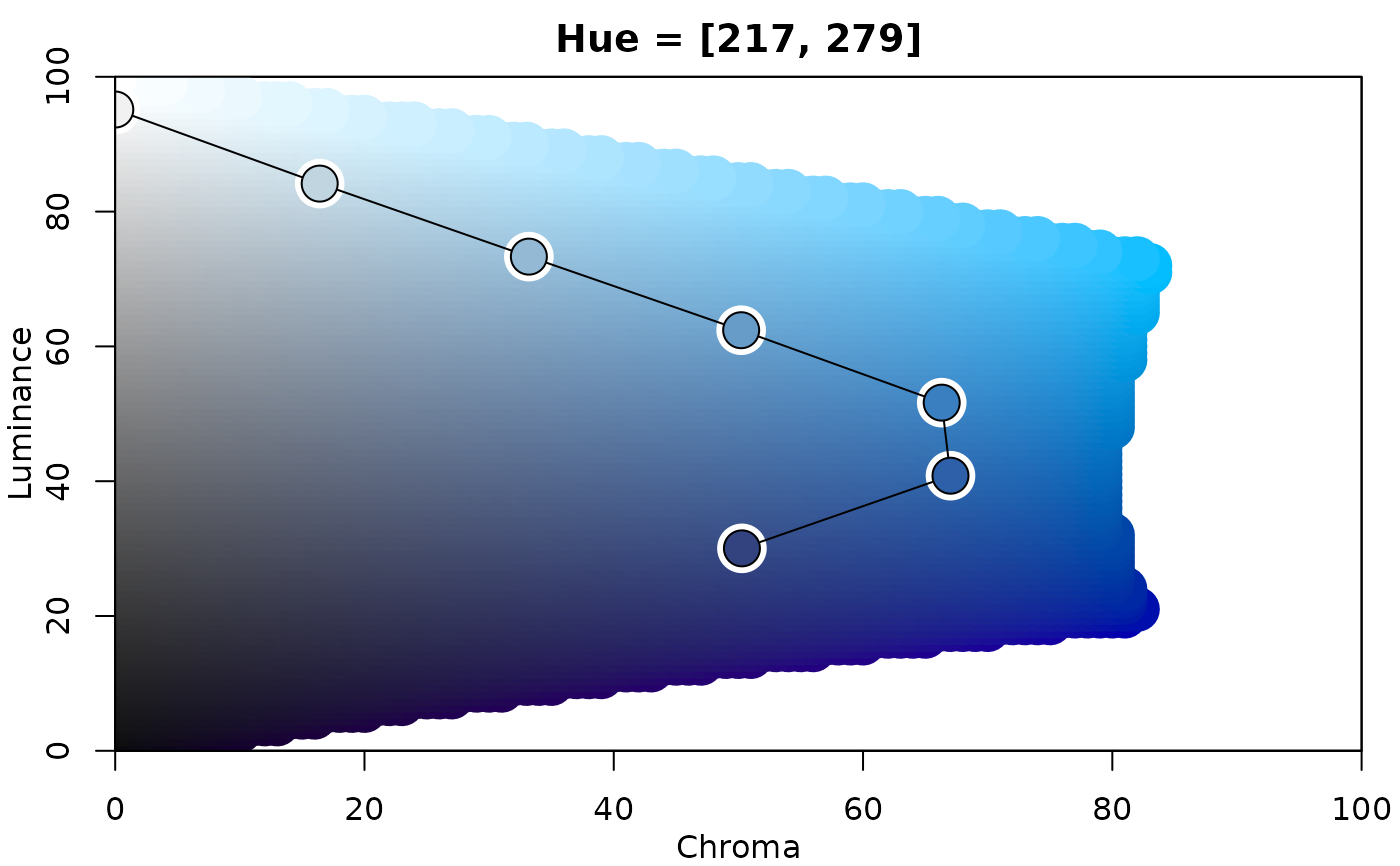 ## advanced single-hue sequential palette with triangular chroma trajectory