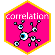 correlation is an easystats package focused on correlation analysis. It’s lightweight, easy to use, and allows for the computation of many different kinds of correlations, such as partial correlations, Bayesian correlations, multilevel correlations, polychoric correlations, biweight, percentage bend or Sheperd’s Pi correlations (types of robust correlation), distance correlation (a type of non-linear correlation) and more, also allowing for combinations between them (for instance, Bayesian partial multilevel correlation).