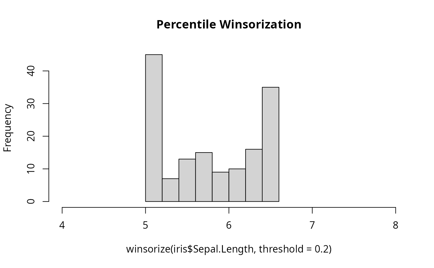 hist(winsorize(iris$Sepal.Length, threshold = 0.2),
