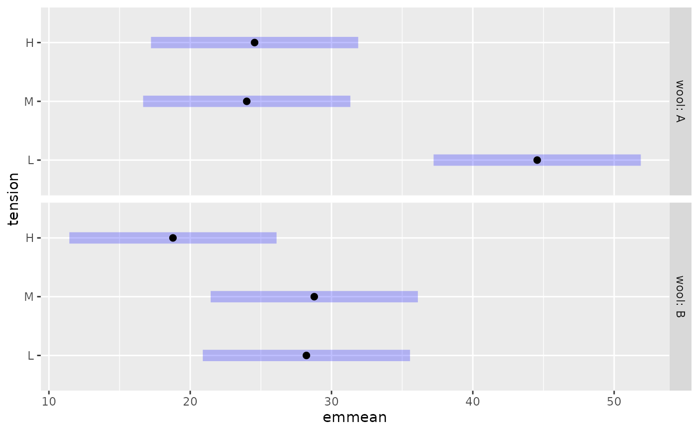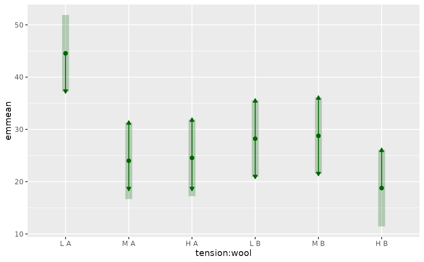 plot(warp.emm, by = NULL, comparisons = TRUE, adjust = "mvt",