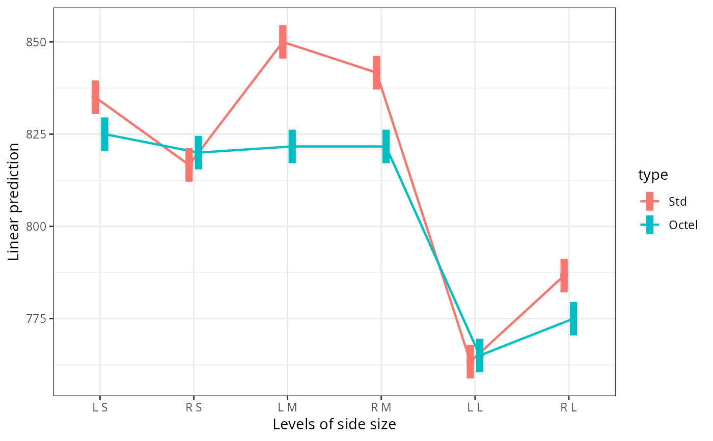 emmip(noise.lm, type ~ size | side)