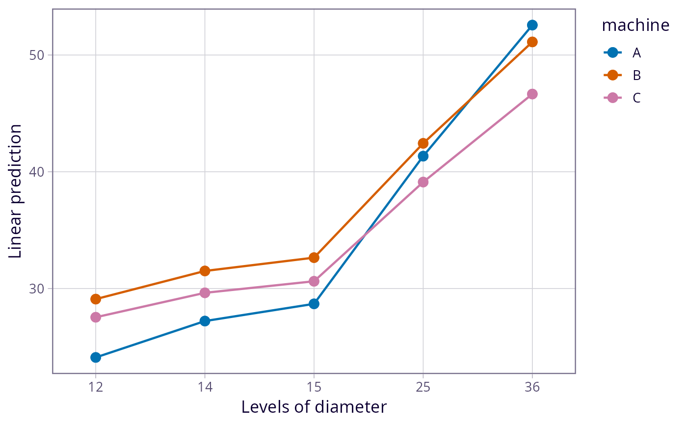 emmip(fib.rg, machine ~ diameter) # curves (because diameter is numeric)