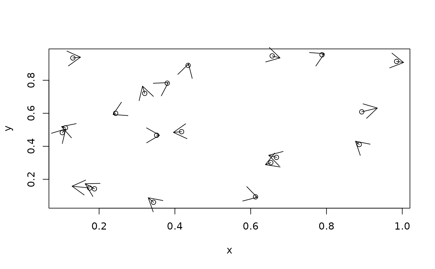 arrow.plot(a1, a2, u = NA, v = NA, arrow.ex = 0.05,