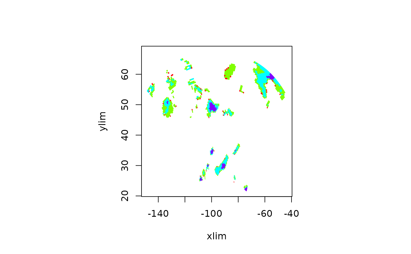 poly.image( RCMexample$x, RCMexample$y, RCMexample$z[,,1], breaks=brk, col=