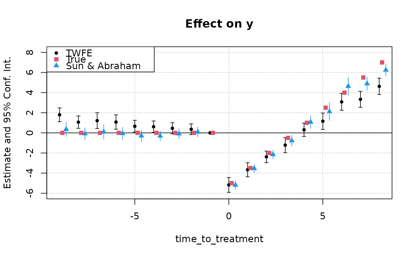 legend = c("TWFE", "True", "Sun & Abraham"))