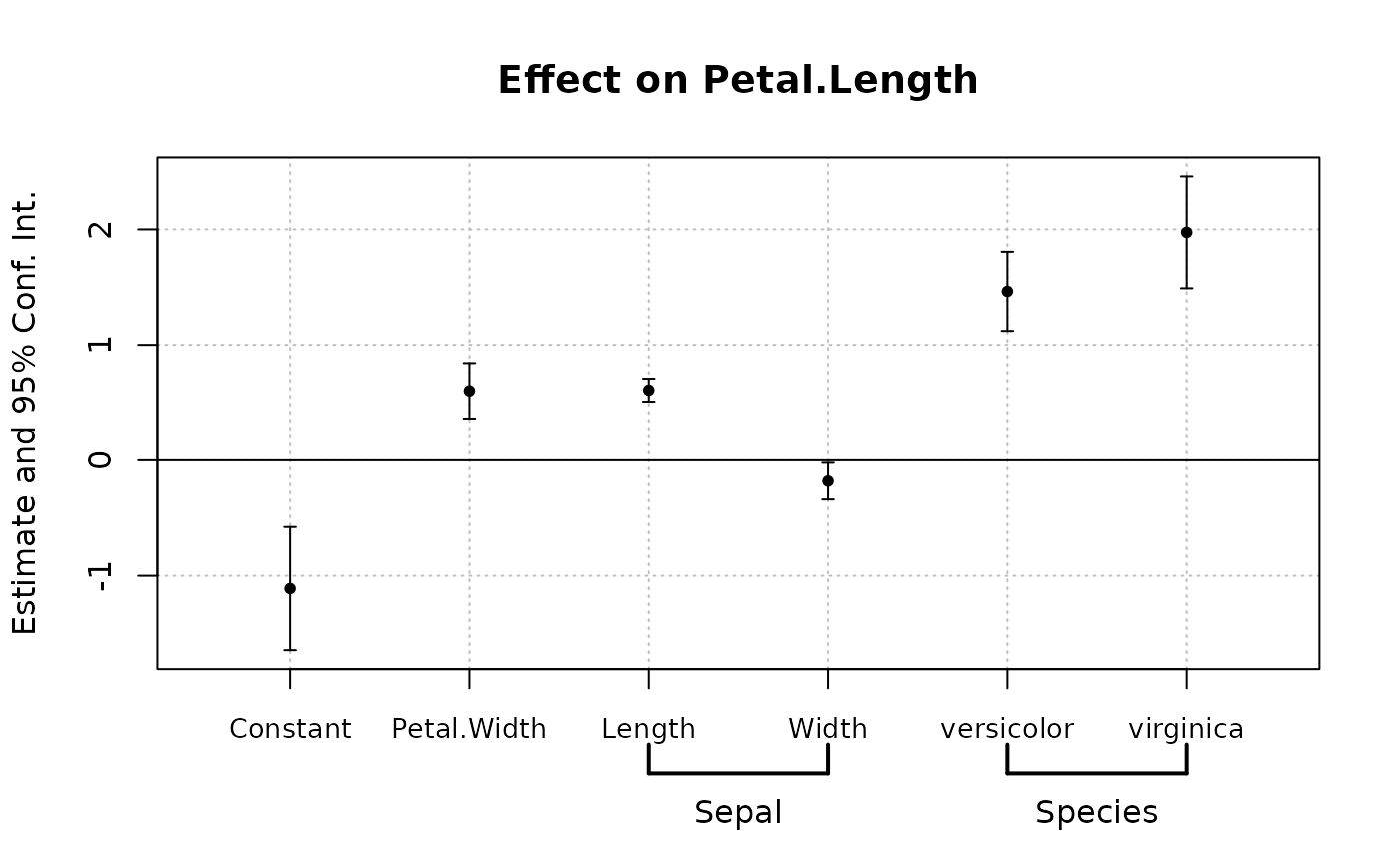 coefplot(est, group = list(Sepal = "Sepal", Species = "Species"))